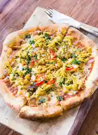 Tomato sauce, chicken, pineapple, mozzarella, olive, colombo spices