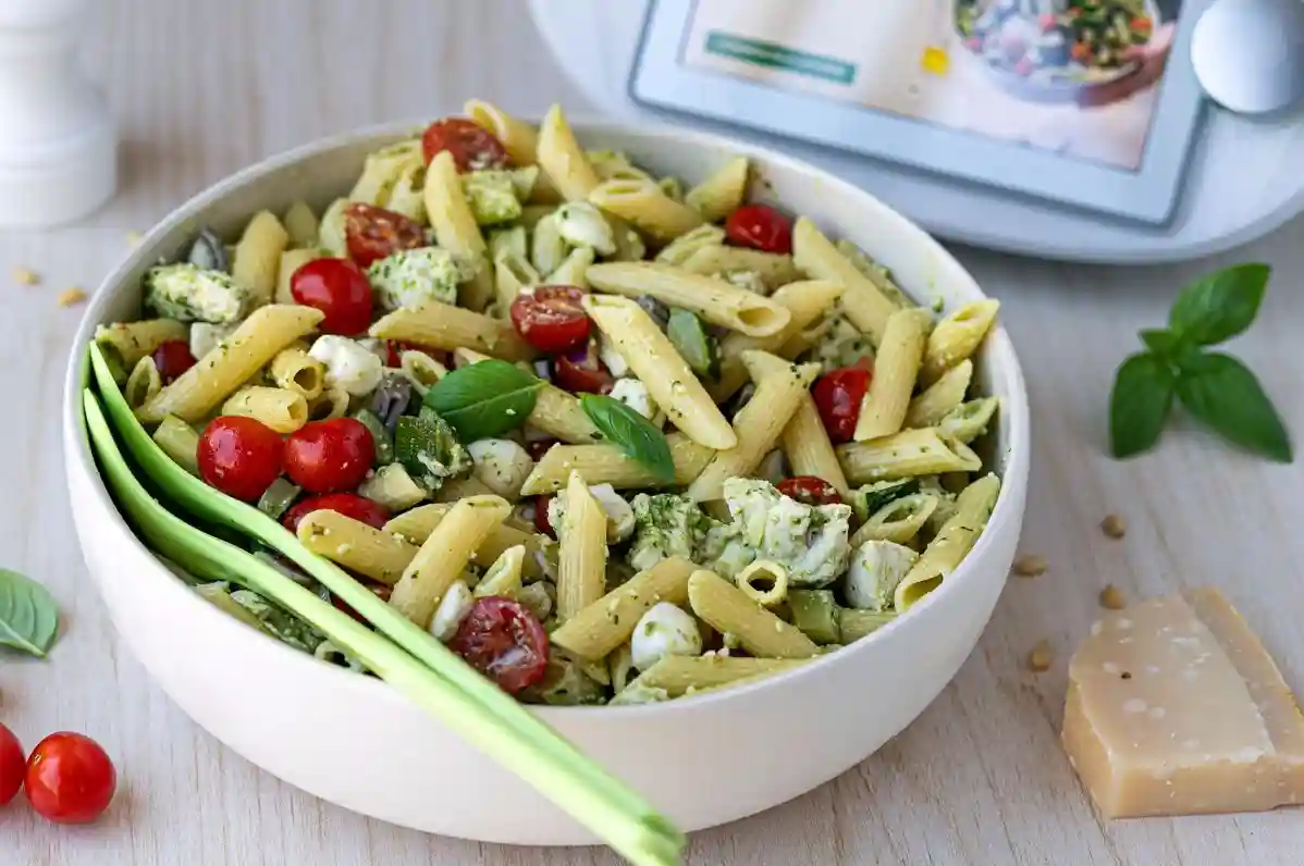 Fresh Cream, Chicken, Mushroom, Cherry Tomato, Pesto, Parmesan, Mozzarella, Olive, Oregano
