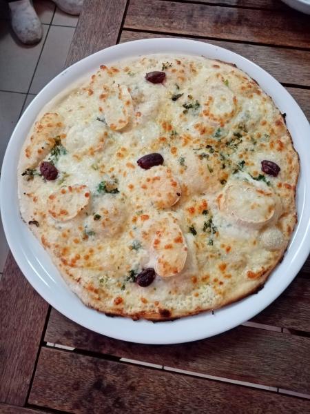 Fresh cream, Gizzards, Lardons, Mozzarella, Parsley, Olives