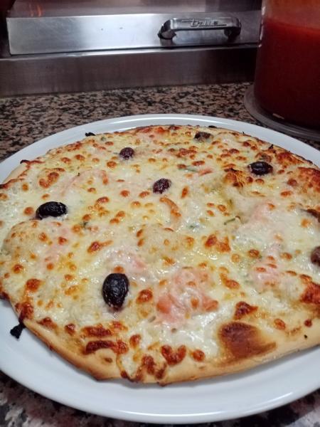 Fresh cream, Mozzarella, Chive, Smoked salmon, Olives