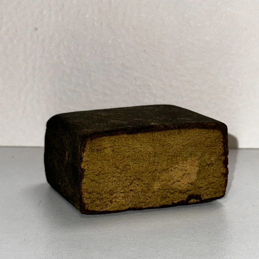 Compact, crumbly resin with spicy, caramelized flavors