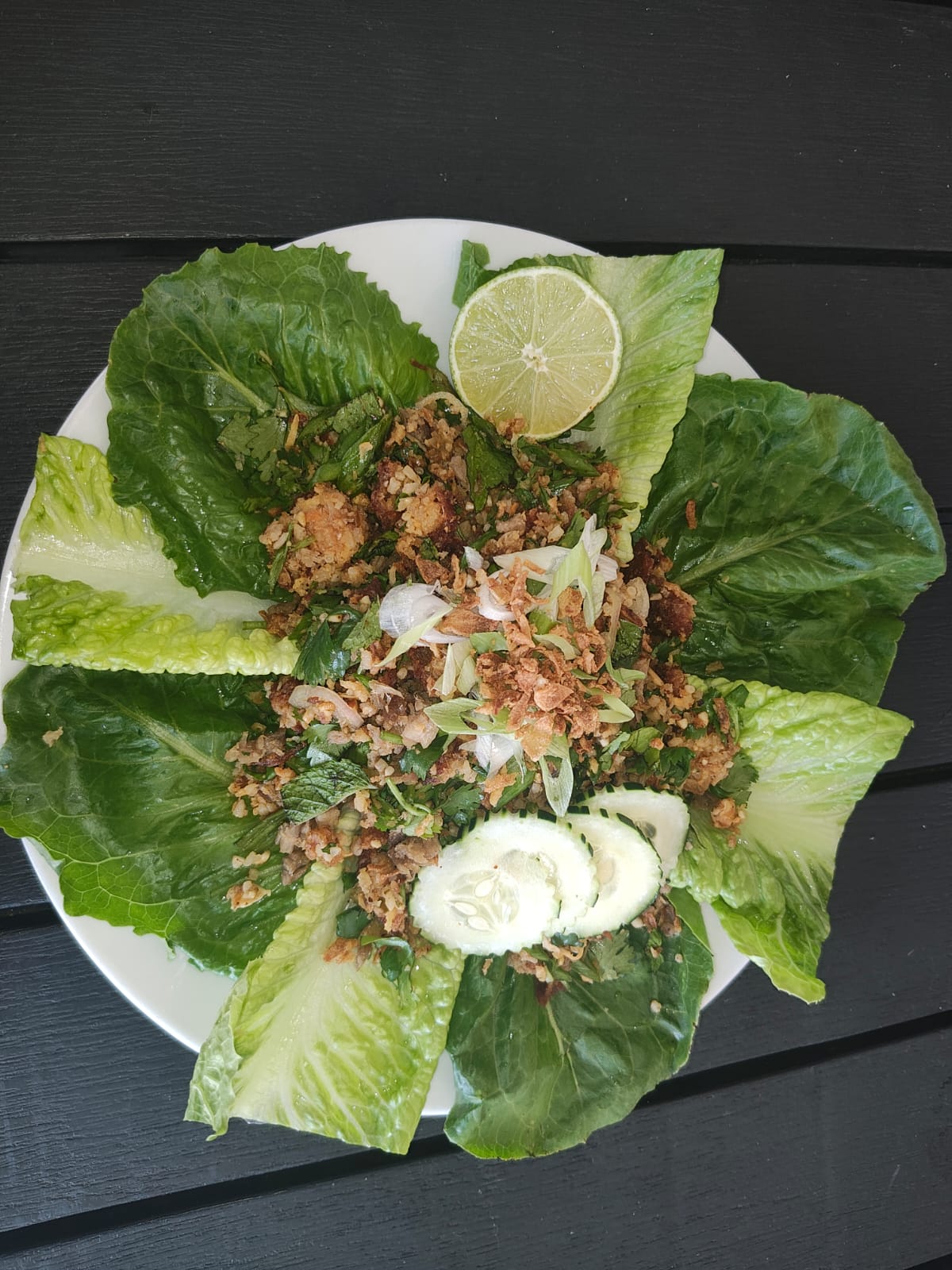 Pork or Chicken or Vegetables, Salad, Mint, Homemade Sauce