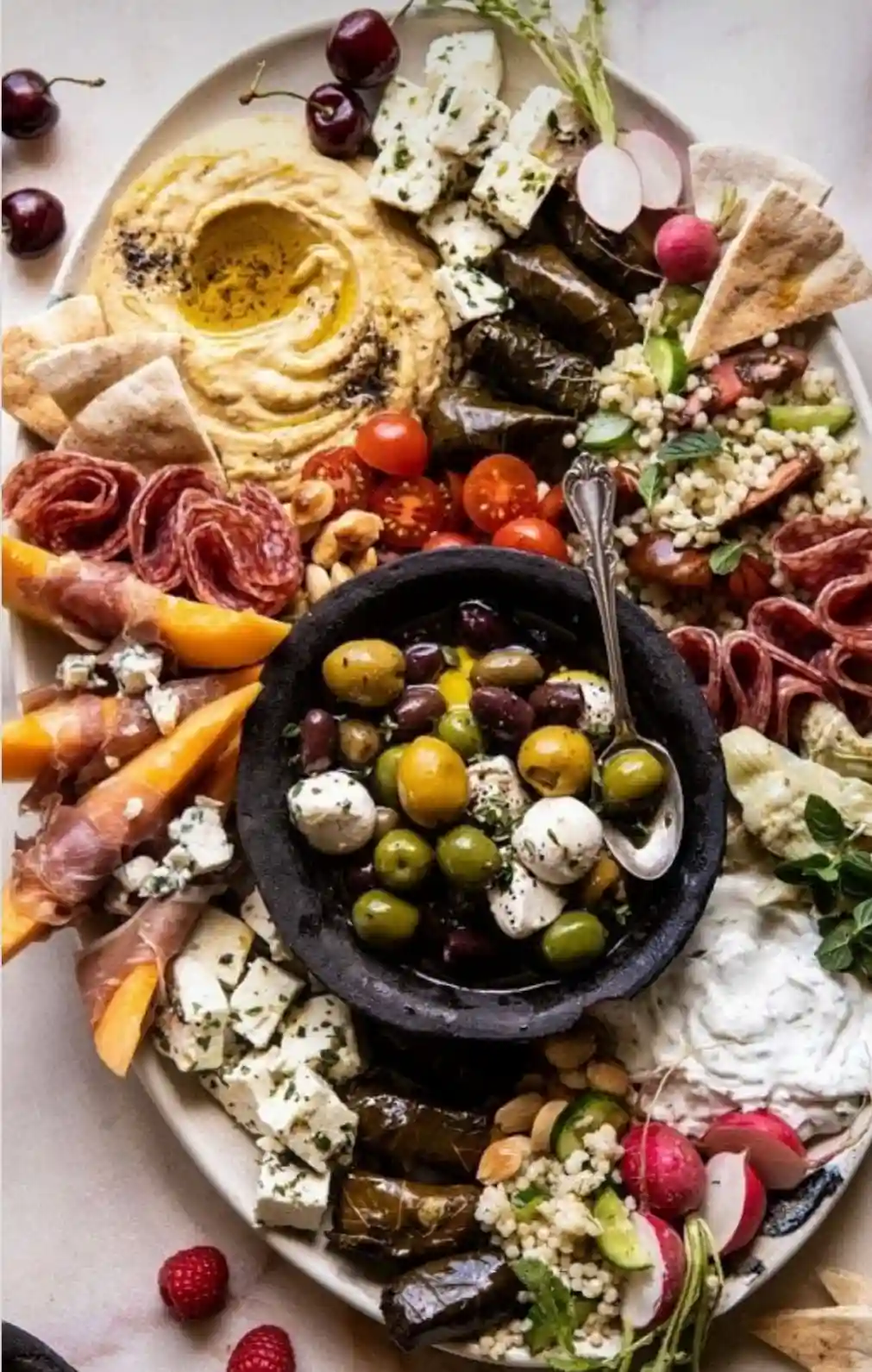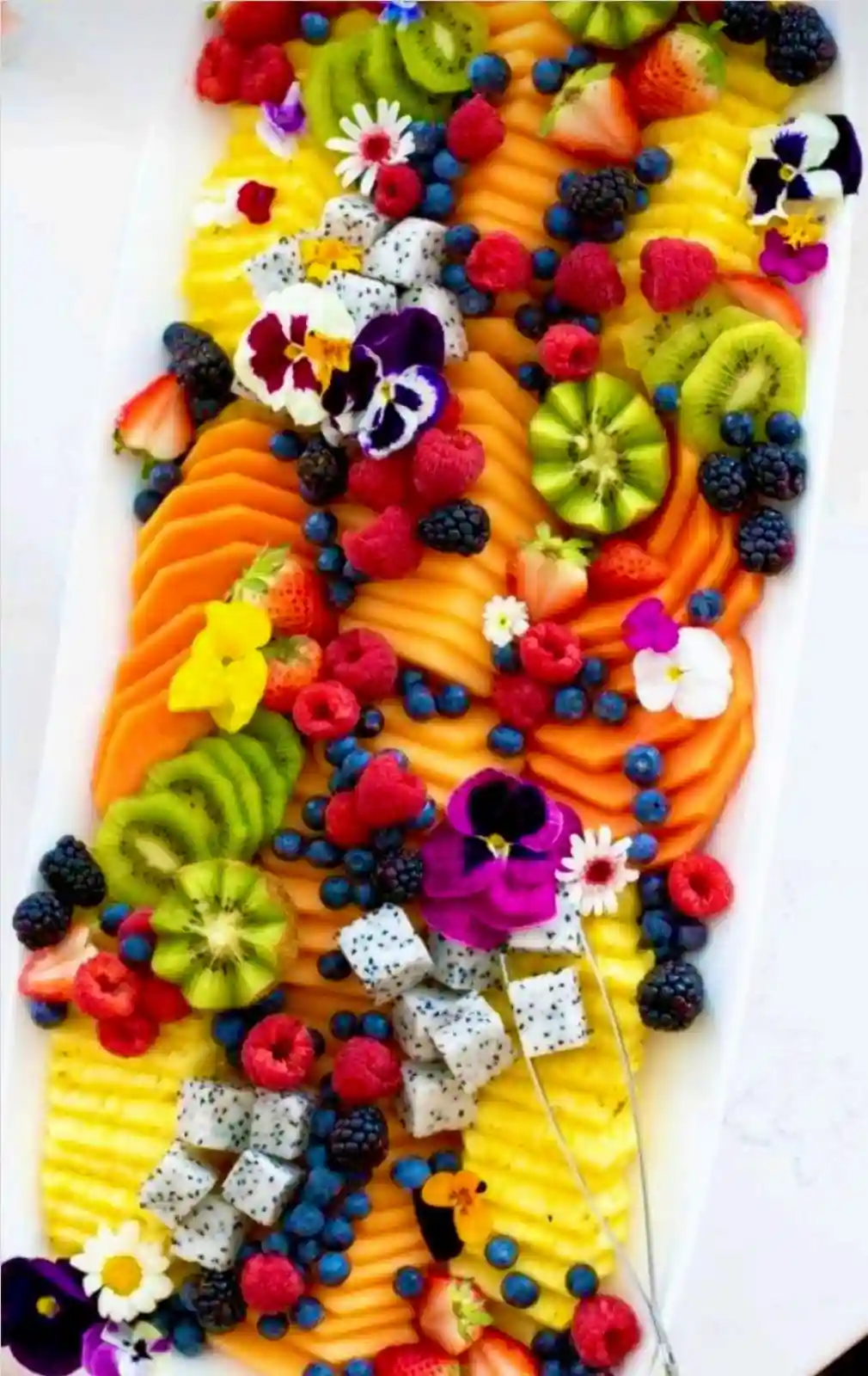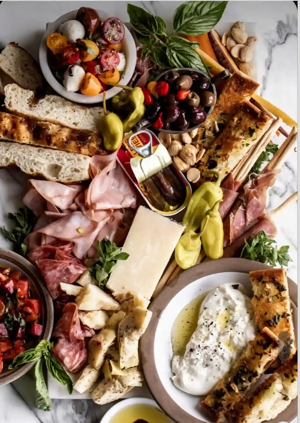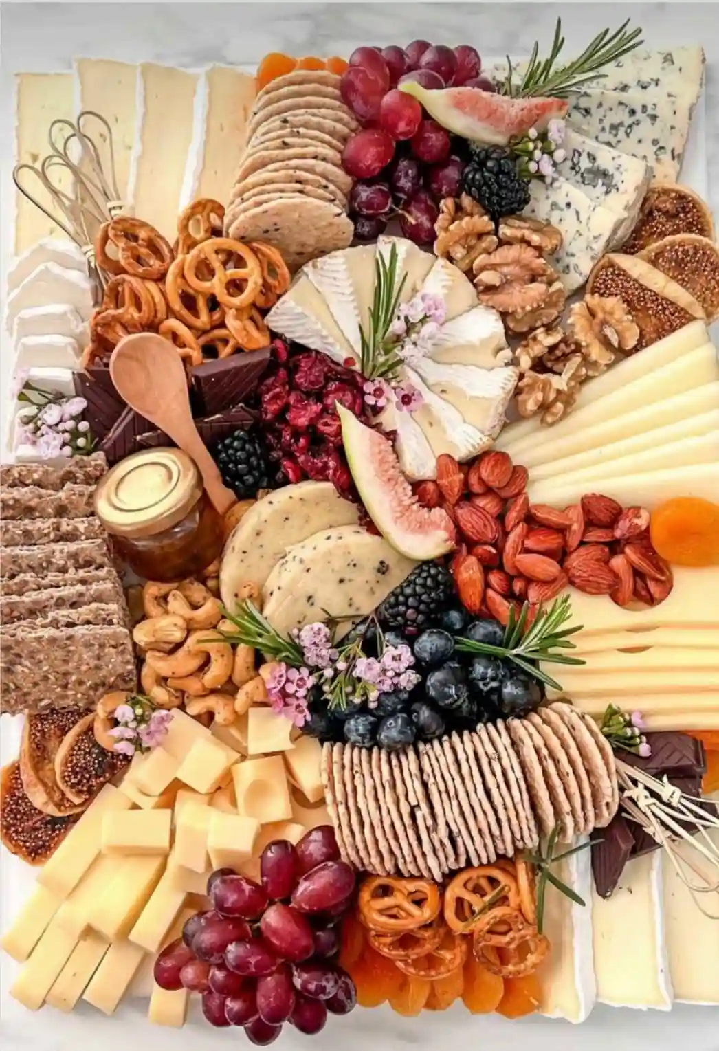 Tomato & Spinach grilled cheese chicken, Scrambled eggs, Orange juice, Butter & Jam, French pastry & Bread, Fruit platter, Coffee & Tea bag