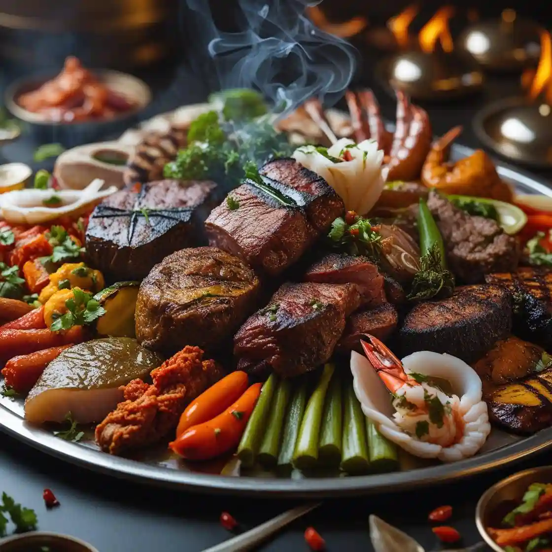 A Delicious Combination of Grilled Meats, Vegetables and Seafood, Expertly Seasoned and Served to Offer a Variety of...