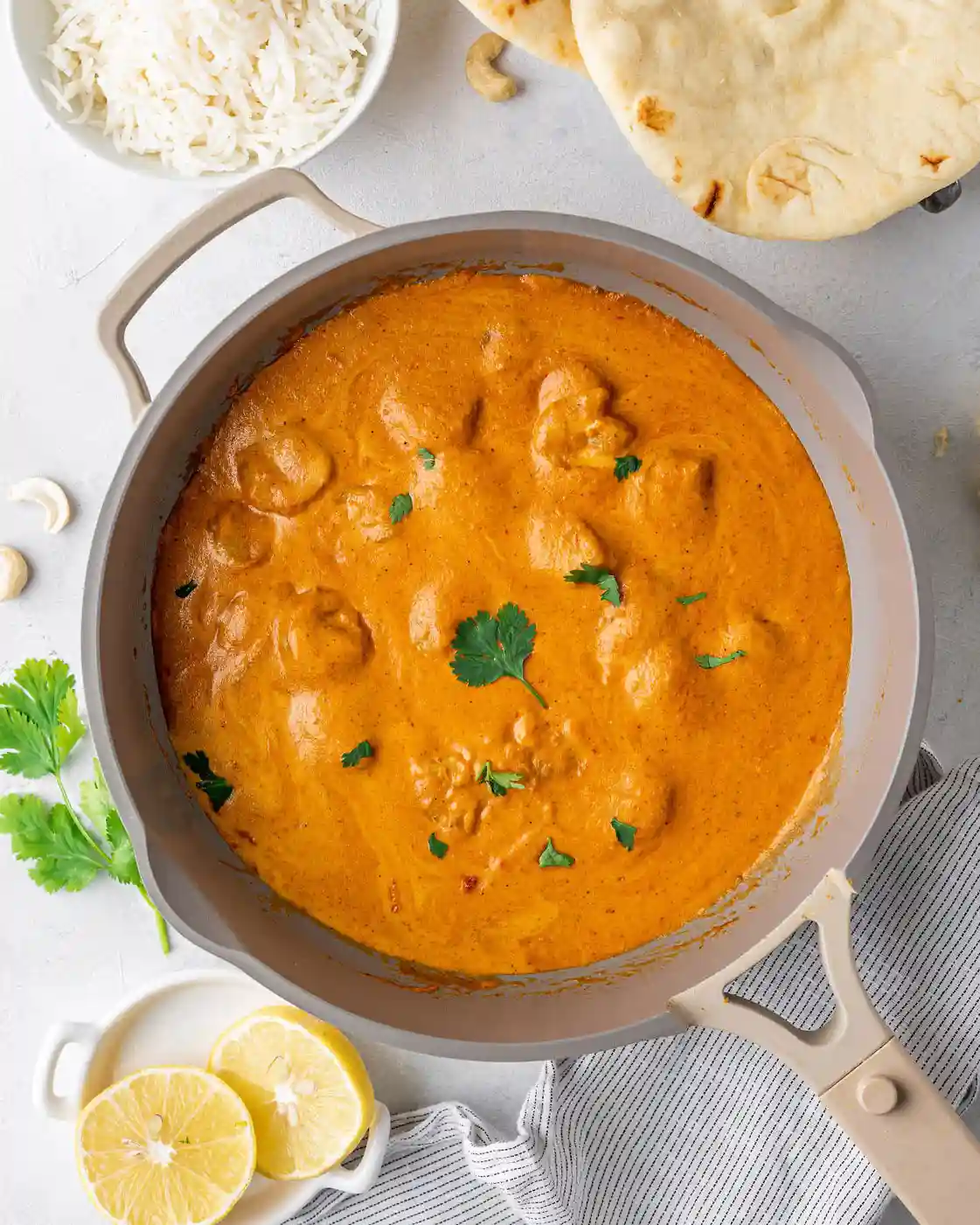 Succulent chicken pieces cooked in a creamy, rich tomato gravy with a perfect blend of spices, offering a mild and in...