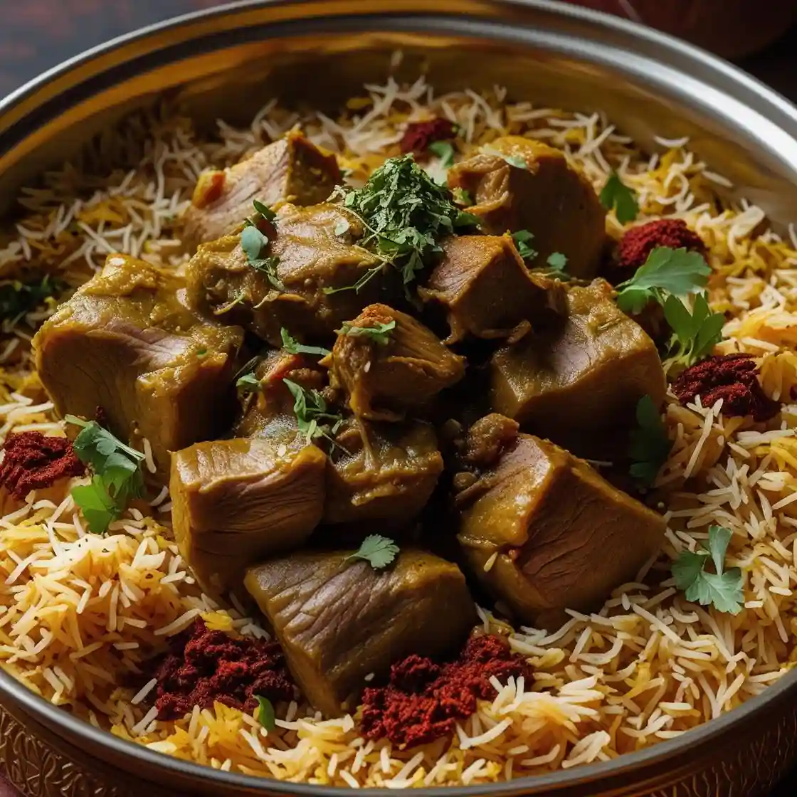 A Flavorful, Aromatic Dish with Succulent Pieces of Mutton, Fragrant Basmati Rice, and a Perfect Blend of Spices, Cre...