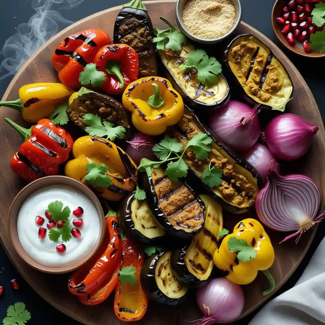 A Colorful Assortment of Vegetables Marinated, Grilled to Perfection and Smoked, Offering a Delicious Blend of Flavor...