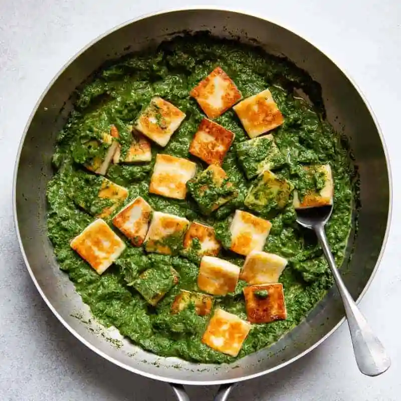 A creamy, vibrant curry made with fresh spinach and soft paneer, simmered in aromatic spices for a comforting, flavor...