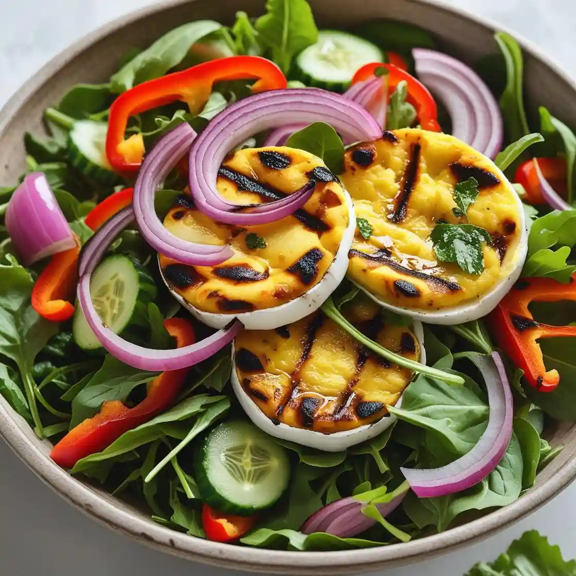 Mixed Salad with Grilled Indian Cheese and Red Onions.