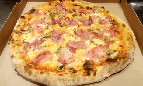Tomato sauce, Ham, Mushrooms, Egg, Mozz…