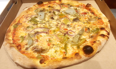 Tomato sauce, Artichokes, Peppers, Onions, Mozzarella