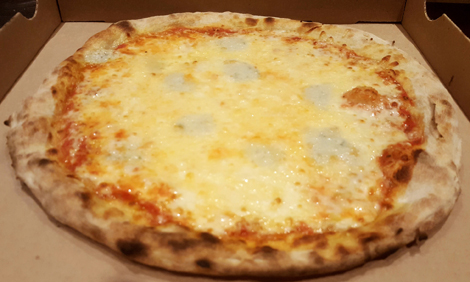 Tomato sauce, Cream, Blue cheese, Goat cheese, Parmesan, Mozzarella