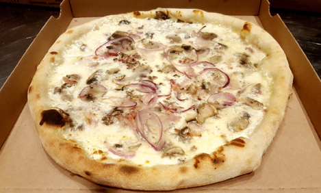 Cream, Bacon, Onions, Mushrooms, Mozzarella