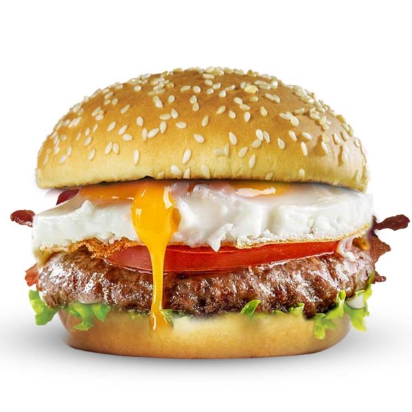 Steak, Salad, Tomato, Onions, Cheese, Bacon, Egg, Homemade fries