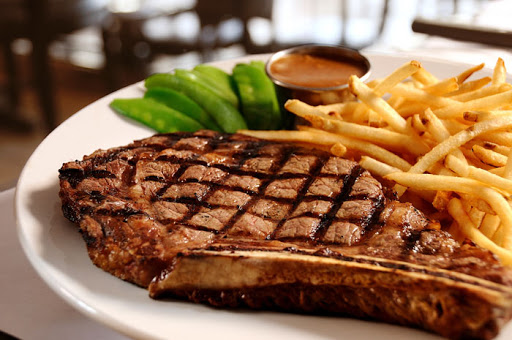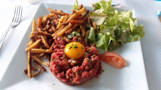 Steak, Salad, Tomato, Onions, Homemade fries + Salade