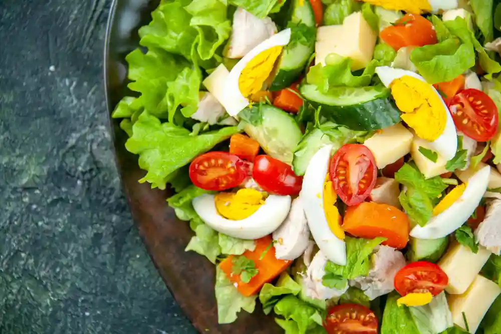 Tomatoes, Eggs, Tuna, Potatoes, Peppers, Cucumber, Anchovies, Olives