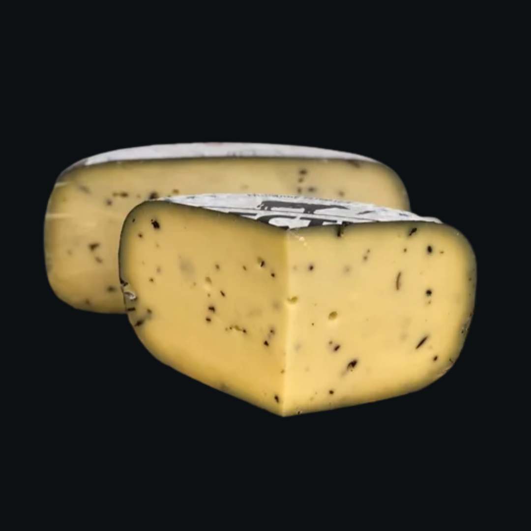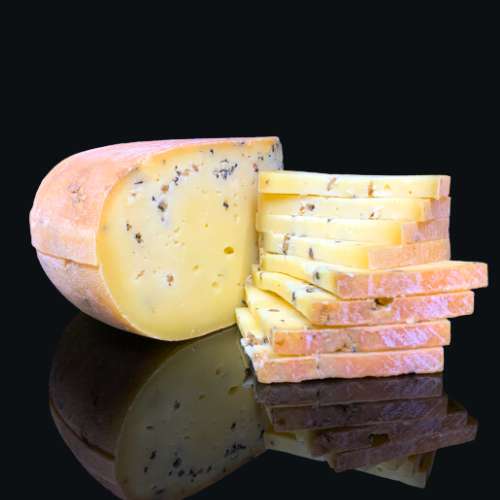 Dutch cheese made from raw cow's milk, it offers a young and supple, pleasantly scented cream to yellow color. The dough is sprinkled with many pieces of truffle.