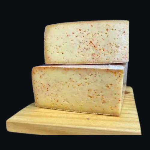 Unlike most other cheeses, the truffle paste is infused after the Moliterno has been aged, so that it develops its own character before the truffles are injected. The truffles are visible only at the level of the veins and the flavor is permeated through all the dough of this amazing cheese.