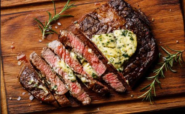 Garlic & Herb Butter, Grilled Asparagus, Salad