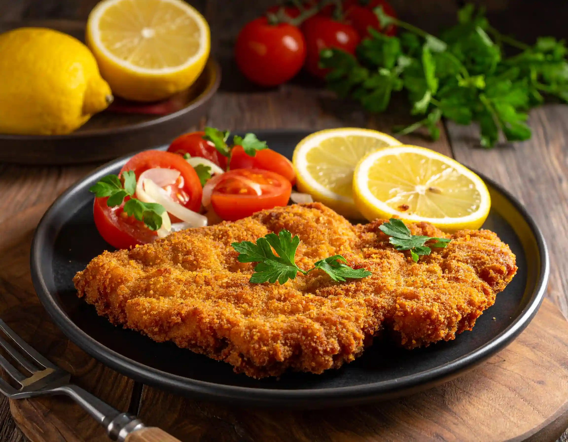 Chicken cutlet, Tomato sauce, Reblochon, Raw ham