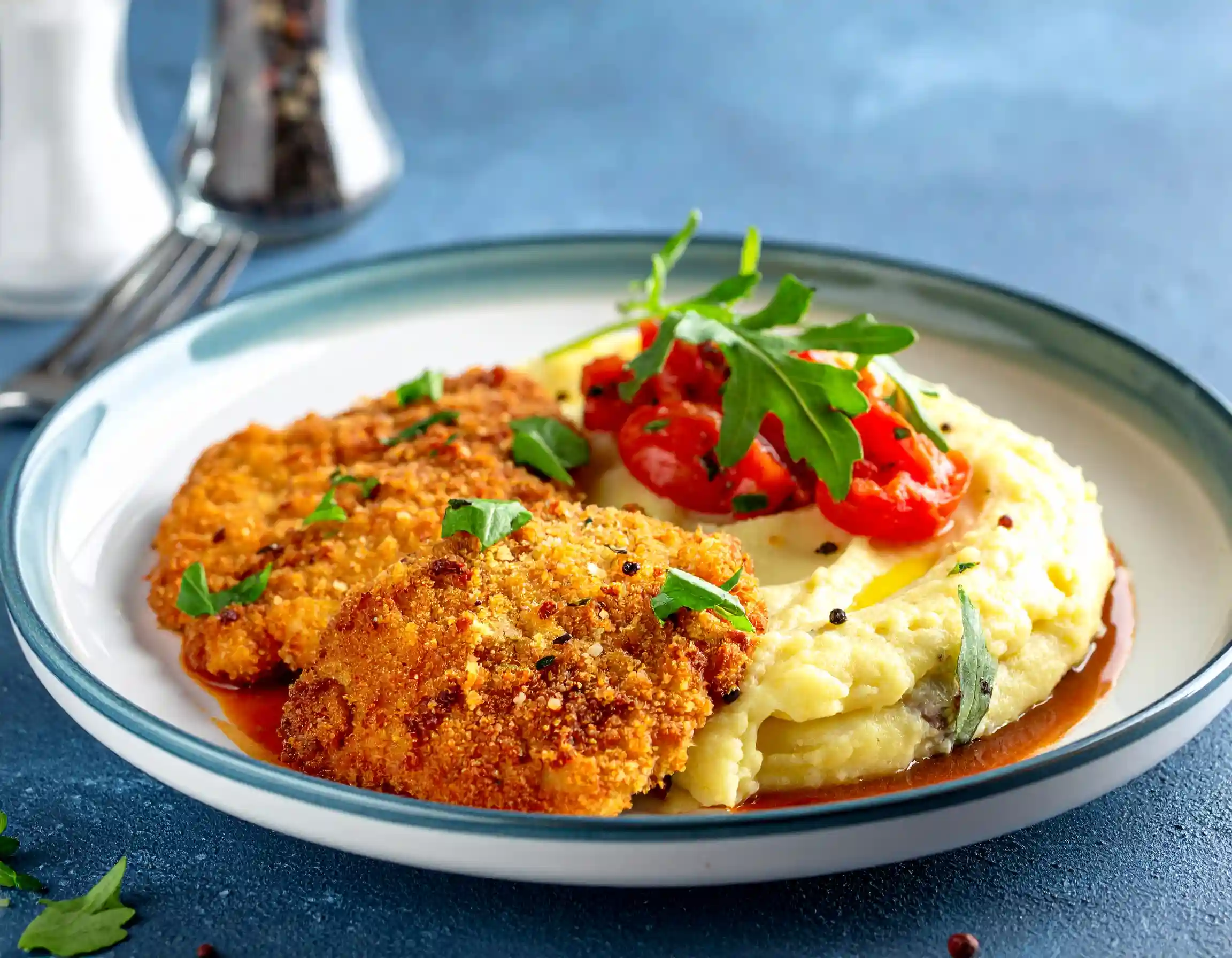 Chicken cutlet, Cream, Onions, Ham, Gorgonzola