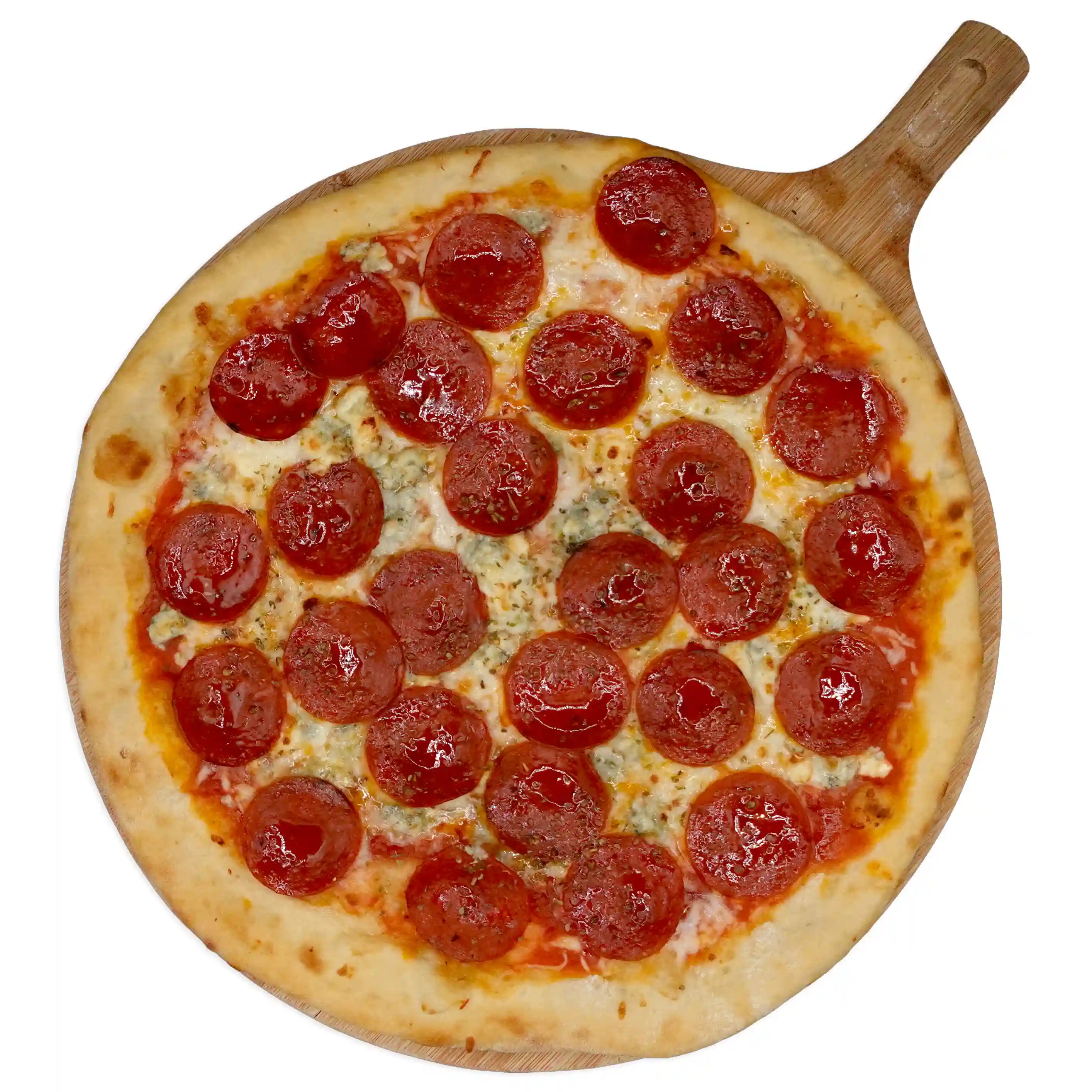Tomato sauce, Mozza, Emmental, Pepperoni, Gorgonzola, Honey
