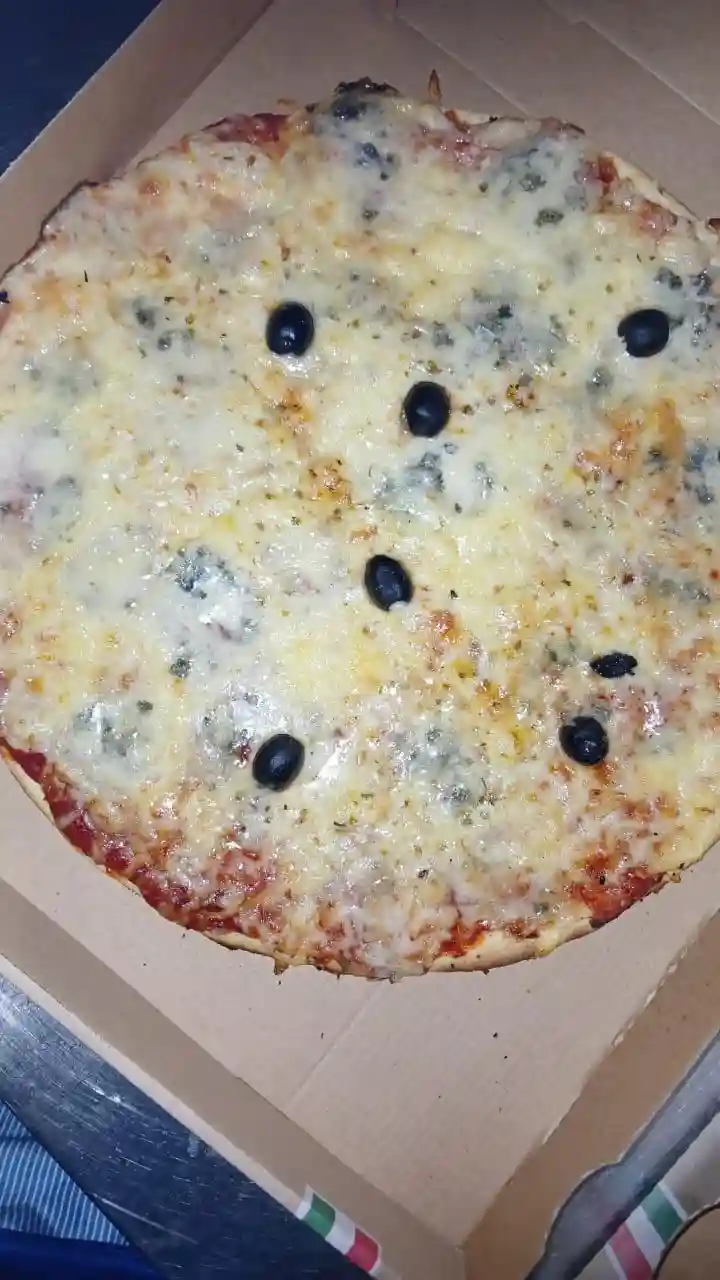Tomatoes, Goat cheese, Roquefort, Mozzarella, Crème fraiche, Olives
