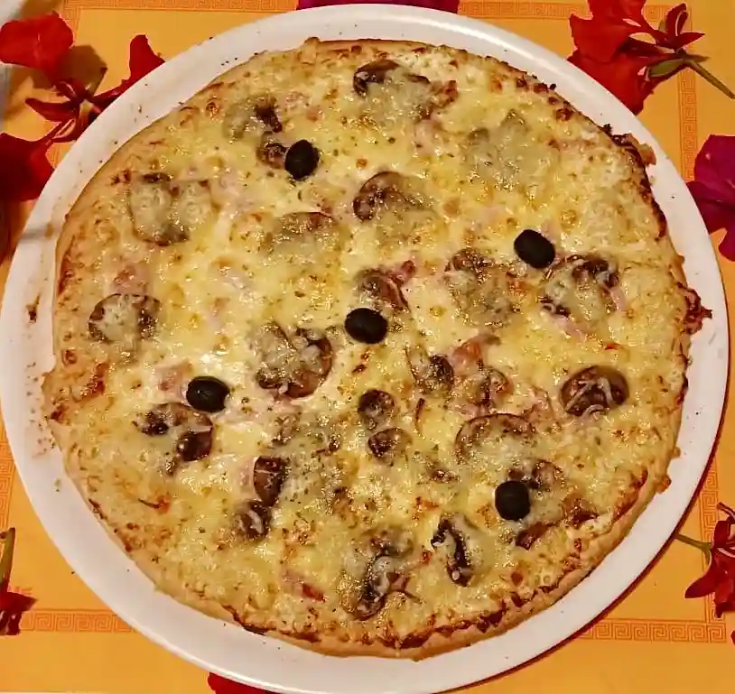 Tomatoes, Mushrooms, Ham, Bacon, Onions, Olives, Cheese