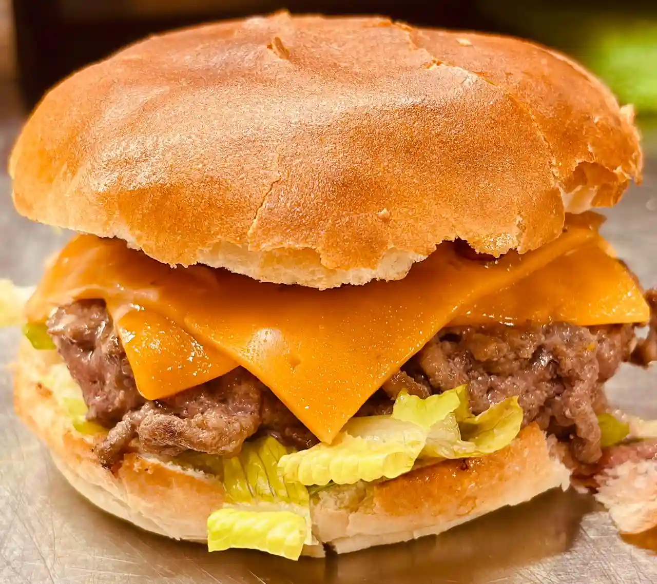 Double Angus Beef 360g, Cheddar, Salad, Tomatoes, Onions, Homemade Biggy Burger Sauce